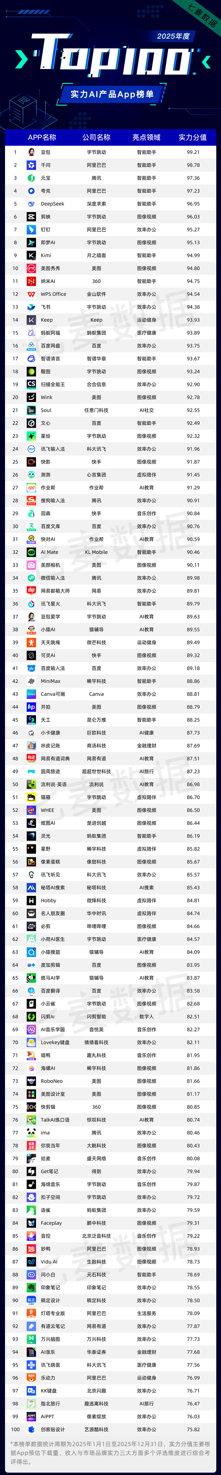 正在2025年度实力AI产物排行榜中,