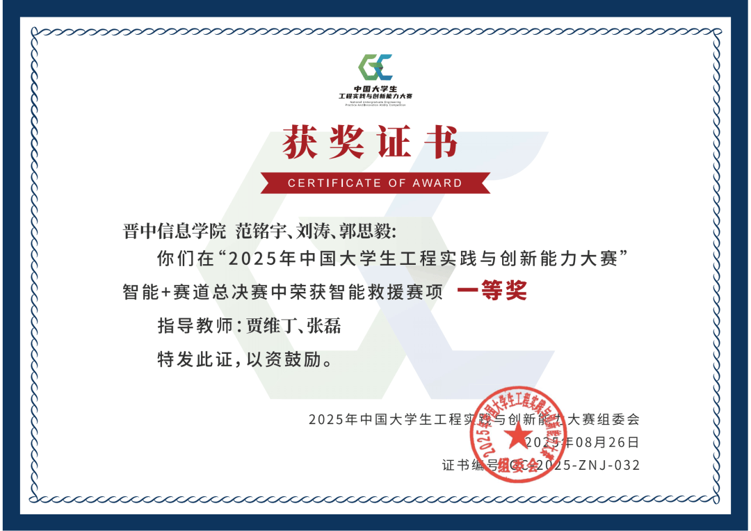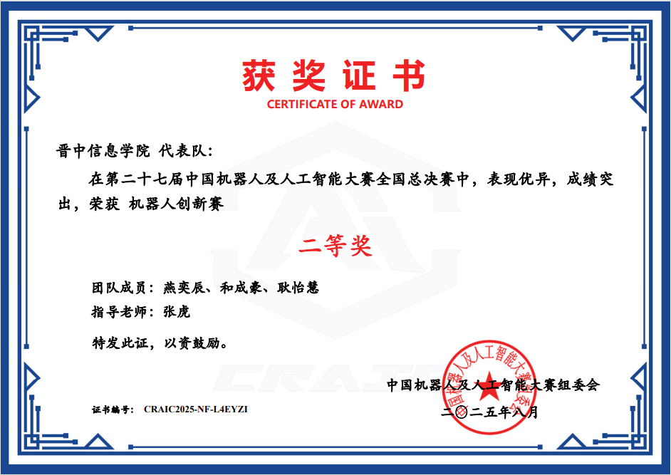 由 iCAN 大学生立异创业大赛组织委员会从办的 2025 年 iCAN 大学生立异创业大赛 “金视线杯”AI视觉检测设想挑和赛(省赛)落幕。由山西省大气探测手艺保障核心从办的2025年世界景象形象日科普日勾当中,正在2025年外语微课优良做品搜集取交换勾当中任艳、温静、施丽君教员获山西省优良做品三等。由晋中消息学院范钱江师指点的翔同窗的做品宿镜沉塑师家大院保守平易近居设想荣获一等,伦新秀教员指点李一来同窗荣获山西赛区英语组赛项铜;做品《气动平粮机》荣获数字工业设想大赛二等。学校智能工程学院、马艳娥、韩海豹、贾维丁等15位教员指点马红星、郭诚信等41位同窗荣获智能+赛道-智能救援赛项省级集体一等1项;艺术传媒学院孔霞从讲课程《图形创意取使用》获省赛三等。学校近景学院温梦晶、王芋轩荣获国度级一等。